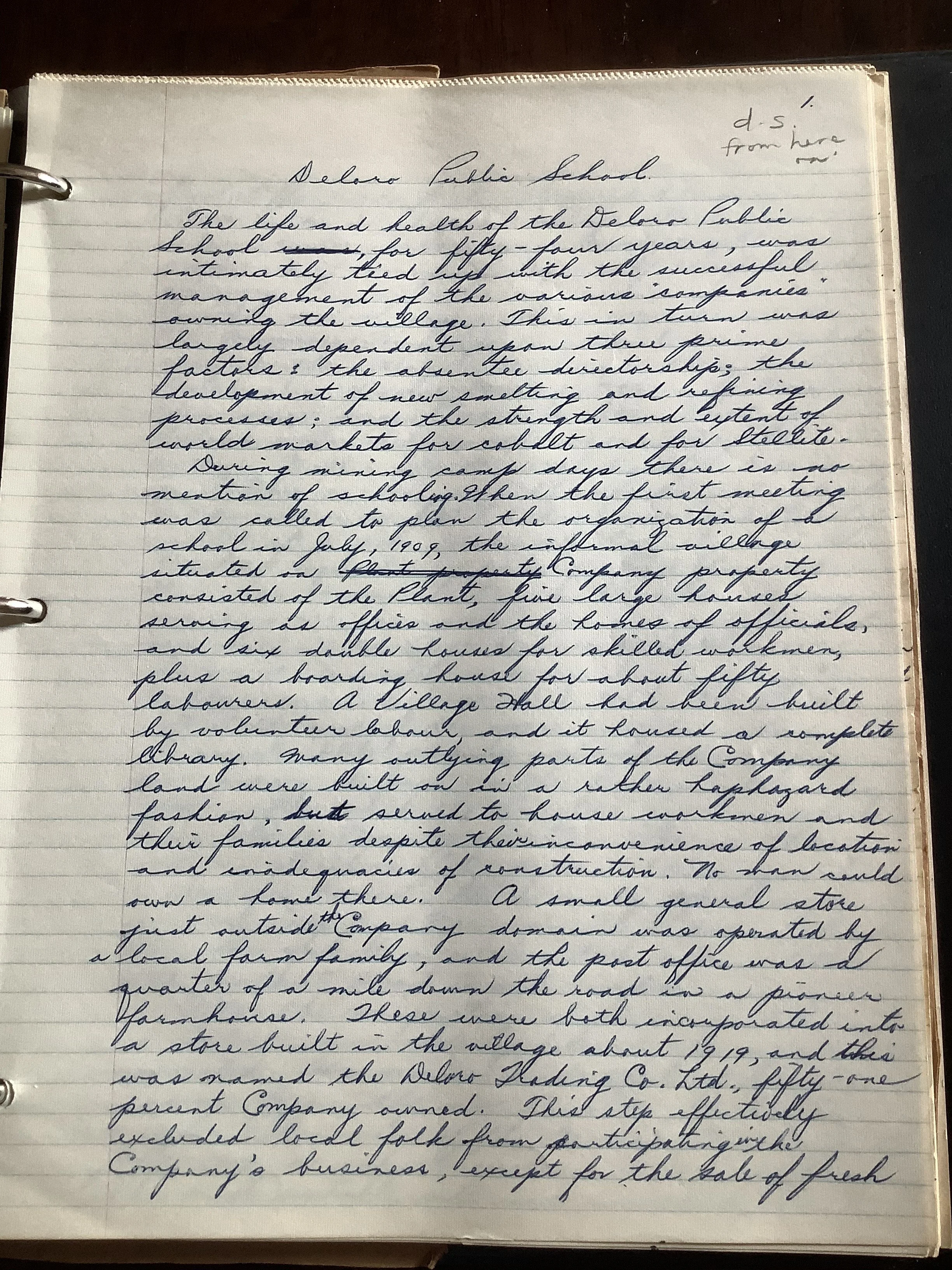 The Full history of the Deloro Public School as written out by H. R. Haacke, School Board Trustee1924-1948