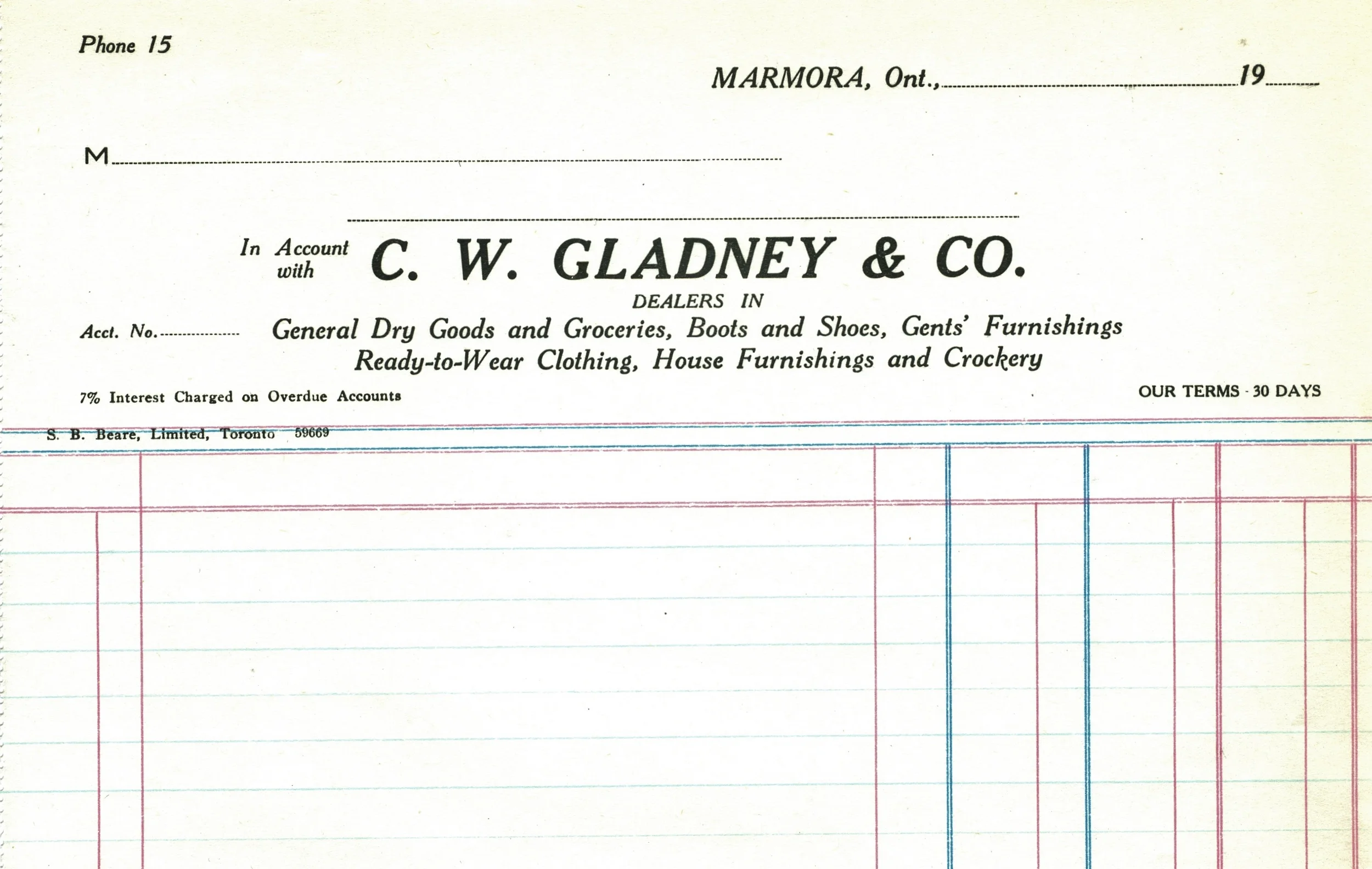 Marmora Herald 1917 - Messrs. E. M. Gladney, C. W. Gladney, J. H. Gehan and T. J.Byrnes have entered into partnership and have taken over the business of E. M. Gladney & Co., which they will continue under the firm name as formerly.