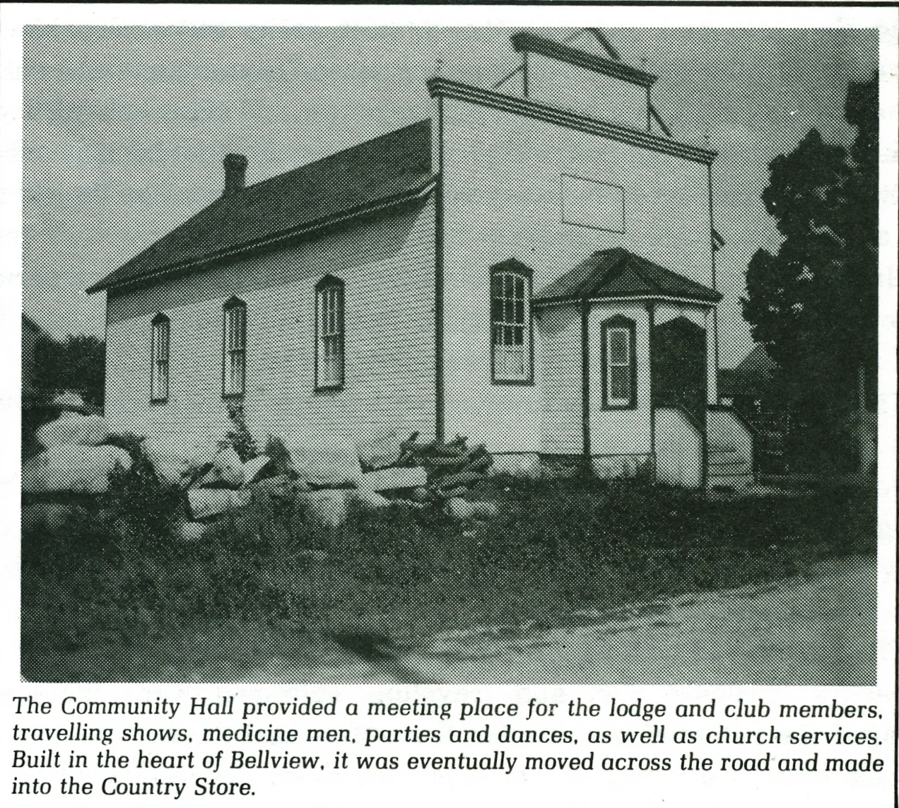When the Rawleigh man moved to new headquarters, a barber moved in and was a welcome addition to the community. He was known to have served his waiting customers with a beer; an unusual method of advertising, but a refreshing one, on a hot day, for his clientele. In the early 1920's, top guns could be found at Bellview's nearby rifle range, which was sponsored by the Canadian government, who supplied the well known high-powered Lee Enfield and the ammunition. Two blacksmith shops, a school and a community-minded teacher, the church, the rectory, and the dedicated reverend, as well as the services of a registered nurse and a seamstress, played a very important part in the lives of many people who lived, loved and enjoyed the good life that Bellview offered."