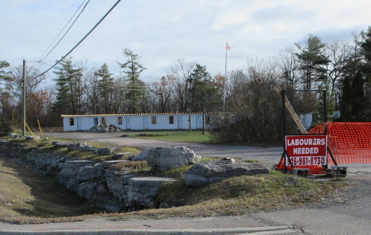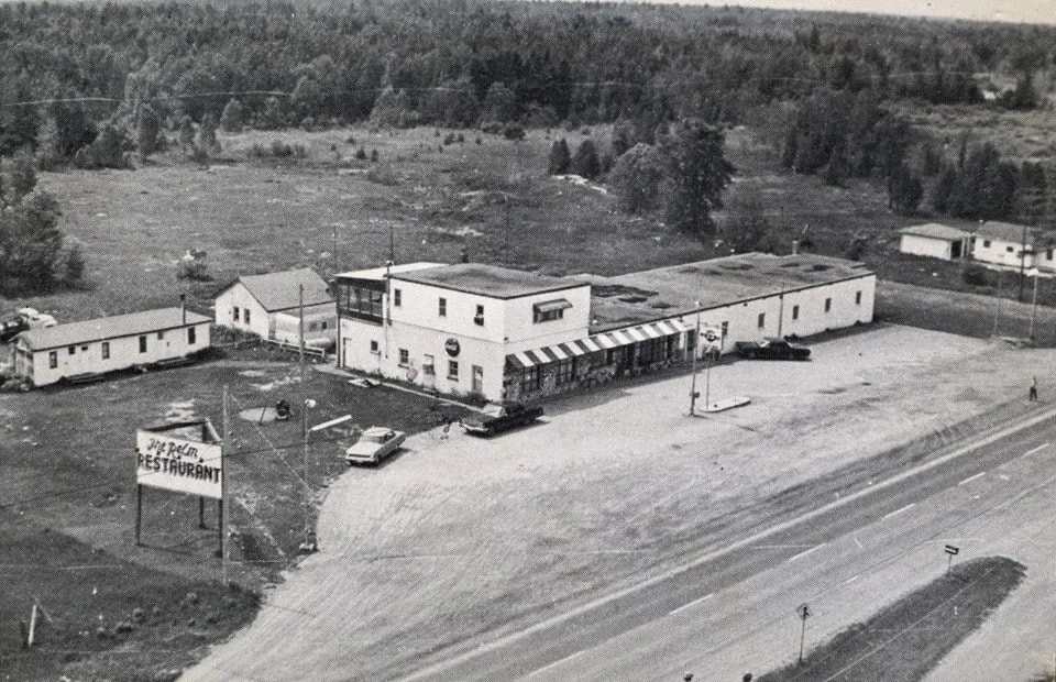 Recently torn down was the building known as the Russ Jarvis' Relm Club, a popular restaurant and dance hall. This building was previously an Esso station, known as Marmora Heights, owned originally by Charles Ibey. He operated with one bay, and after selling to James and Edna Eady, a second bay was added. (See Gas stations)