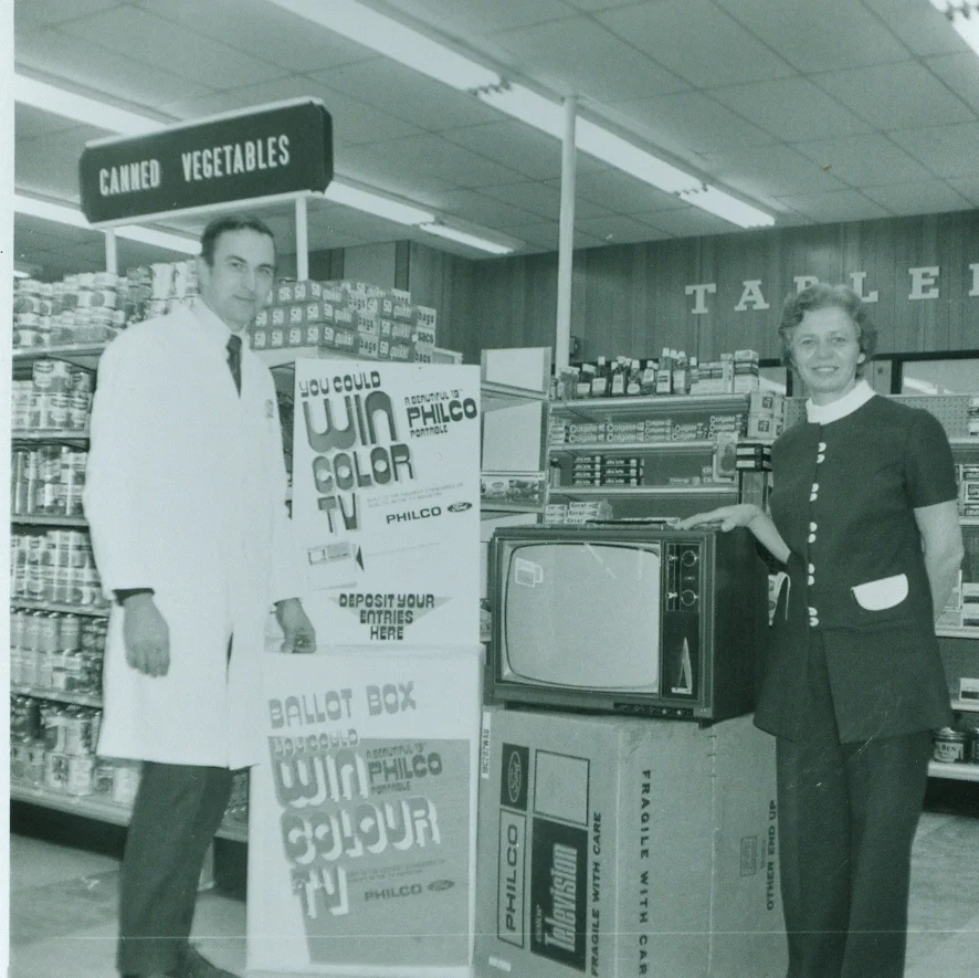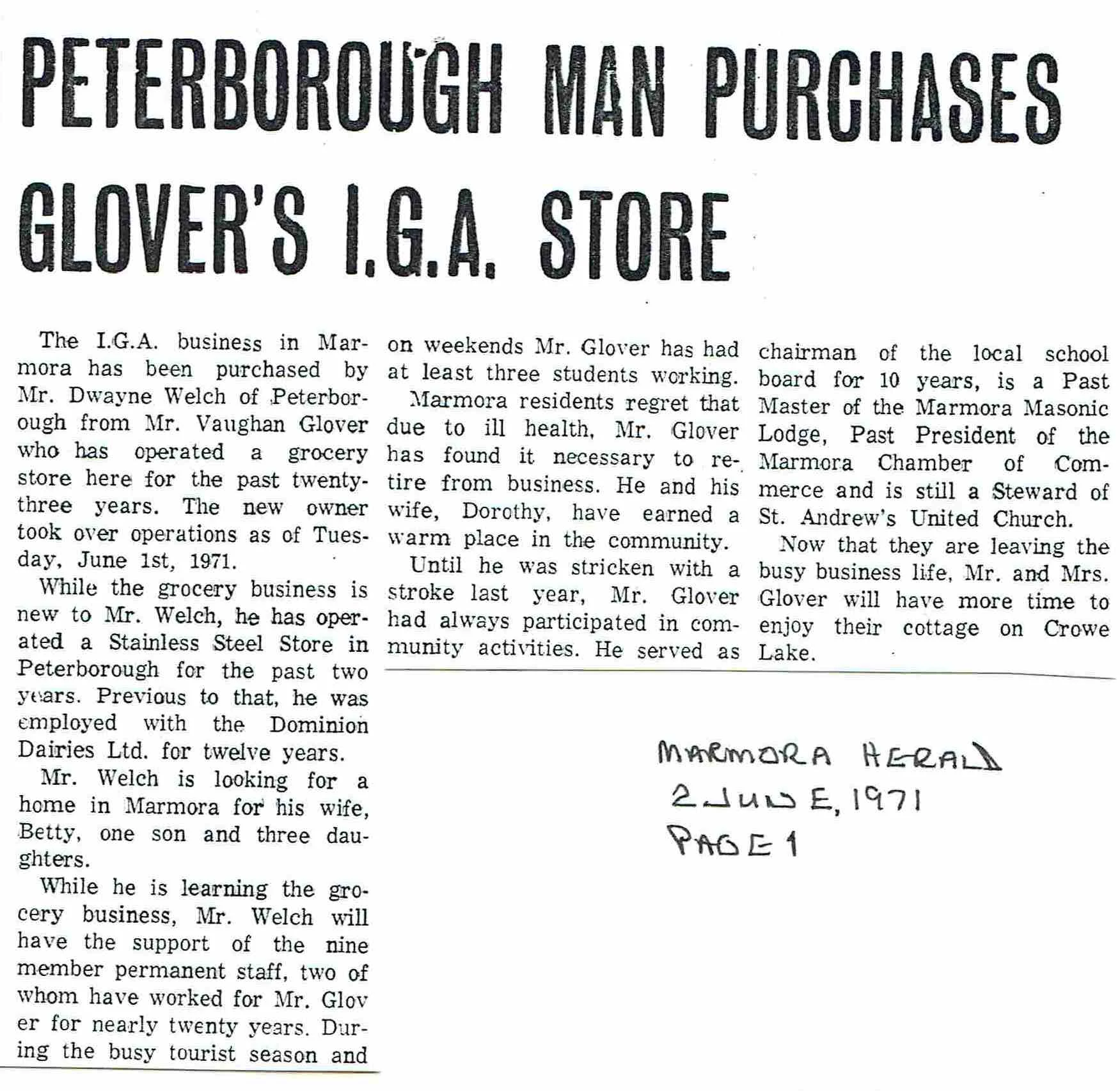 DWAYNE & BETTY WELCH AT THE IGA Highway 7 (Purchased from Dot & Vaughan Glover in 1971)