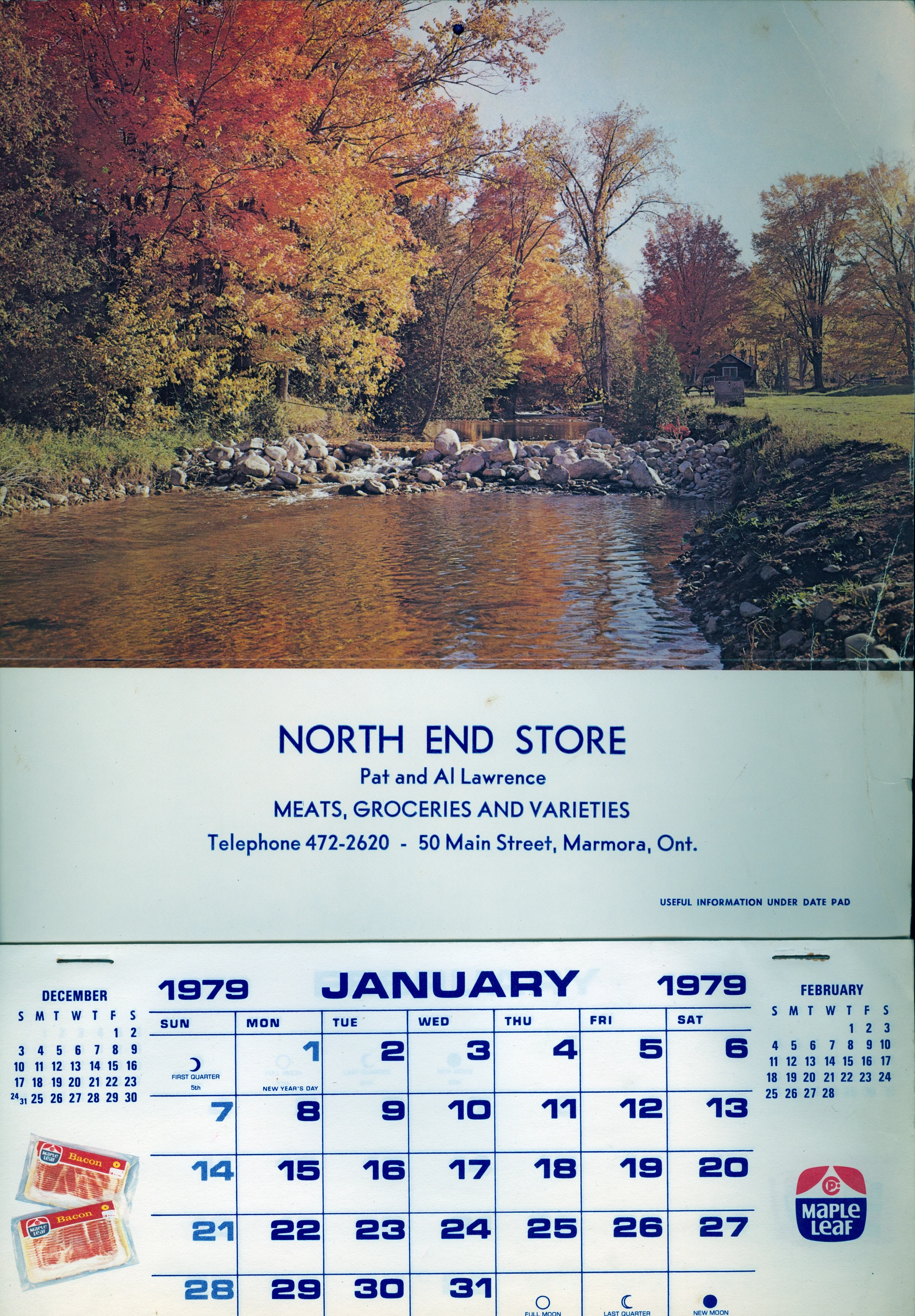 Sue Cuddy writes: The North End Store was started by Matthew and Annie Mc Garvey who handed it down to Wes and Olive Cuddy. They in turn sold to Rose McGarvey and she sold it to Al and Pat Lawrence. The Lawrences have the old store sign .