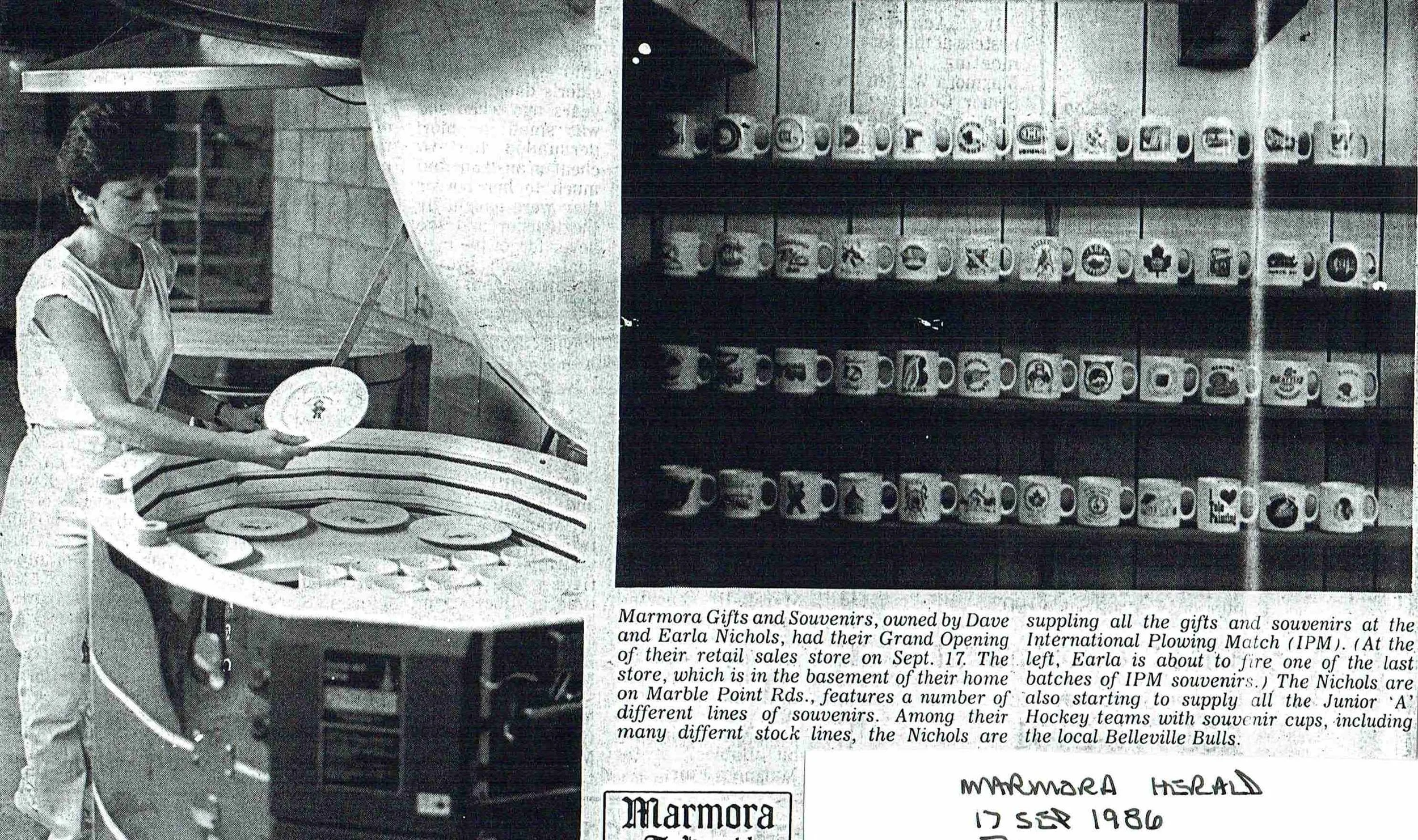 1984 - Earla and Dave Nichol - Souvenirs and Water Crocks - in the Mar-L-Mar building, 6 Mathew Street West, opposite Fire station (Also opened at store at 28 Forsyth)