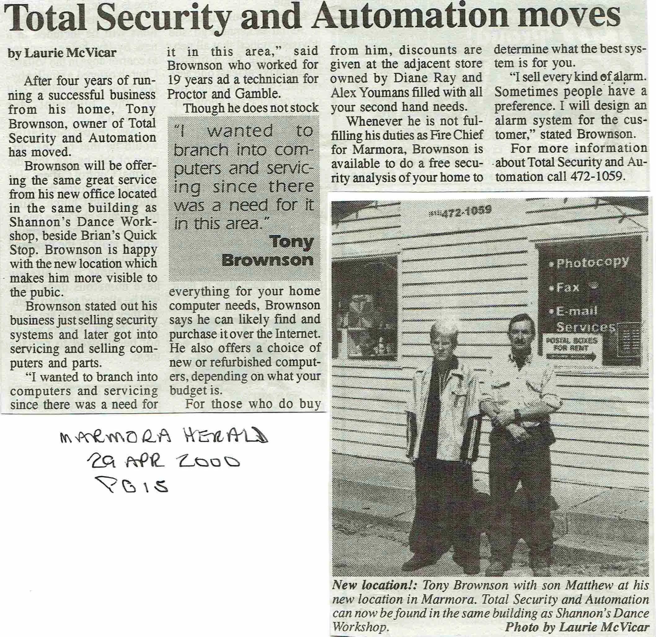 T-BELL’S, BROWNSON SECURITY, CANADA TALC, WEGNER TAILORING, BUNKERS, CHRIS’ BAITS, DRUMMOND’S & BMR, ANTIQUES & REAL ESTATE OFFICES