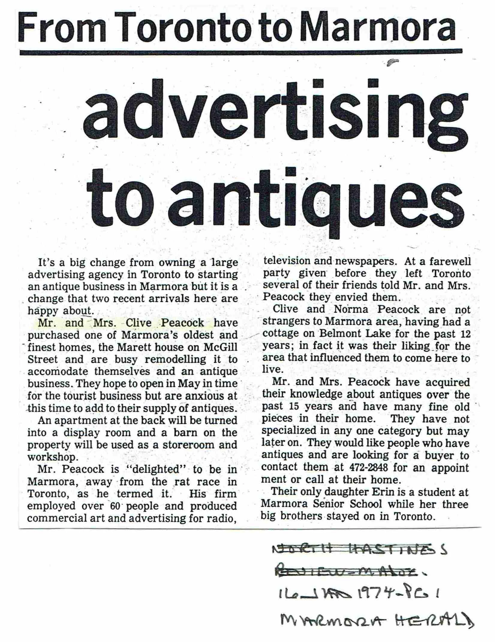1. In October of 1917, the Marmora Herald reported that Flynn and Lumsden sold off their Harness buisness, including all tools and implements, and a machine. We don't know where this business was located.