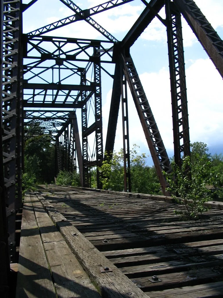 A 120 metre swing bridge was built to cross the Trent Canal, and now remains permanently open. The track, now a recreational trail changes name t this point. To the north it is the Hastings Heritage Trail, allowing motorized recreational vehicles; to the south it is known as the Lower Trent Trail, with its trail head office at the site of the Frankford Station, which has been relocated to Stockdale.
