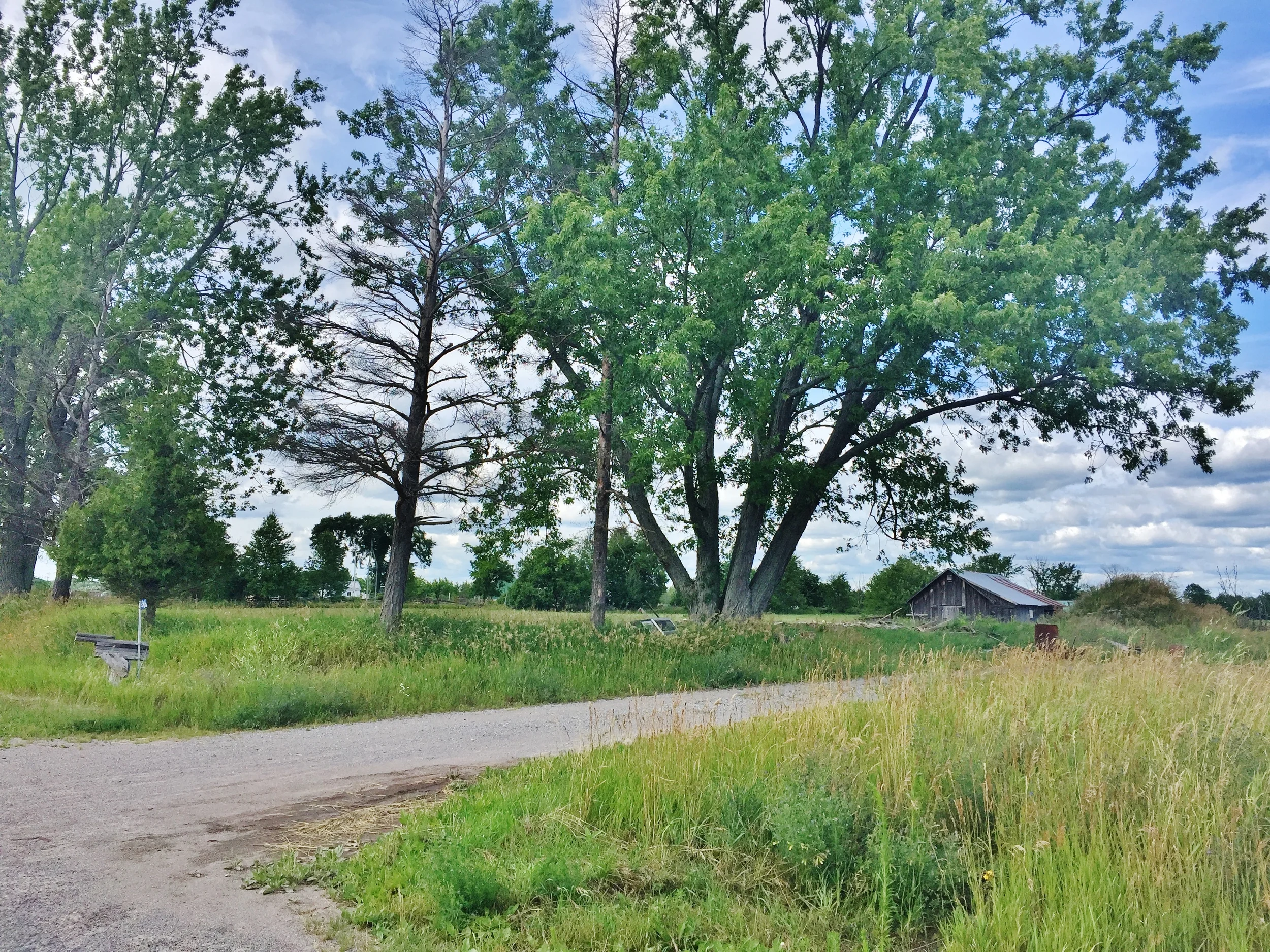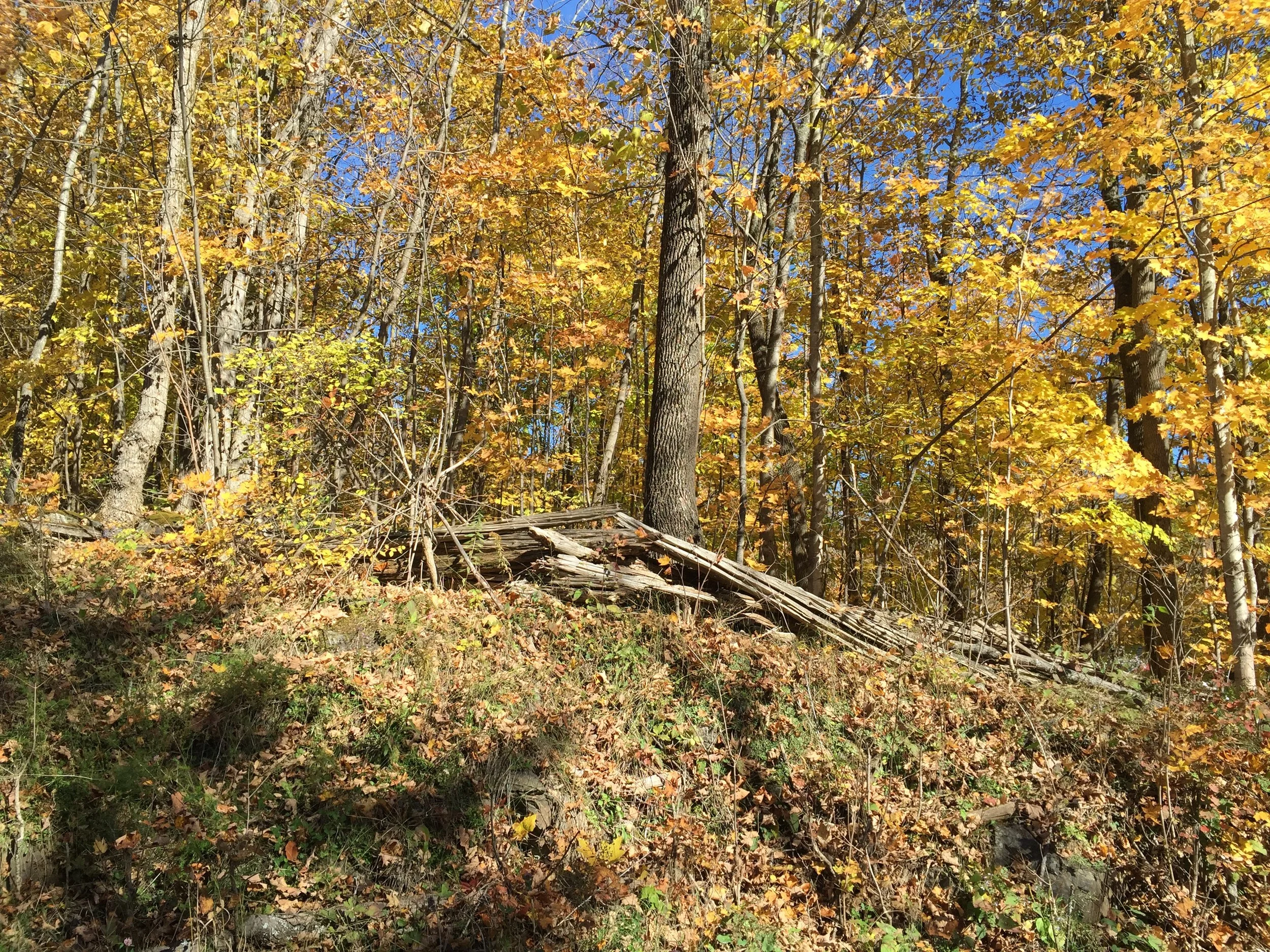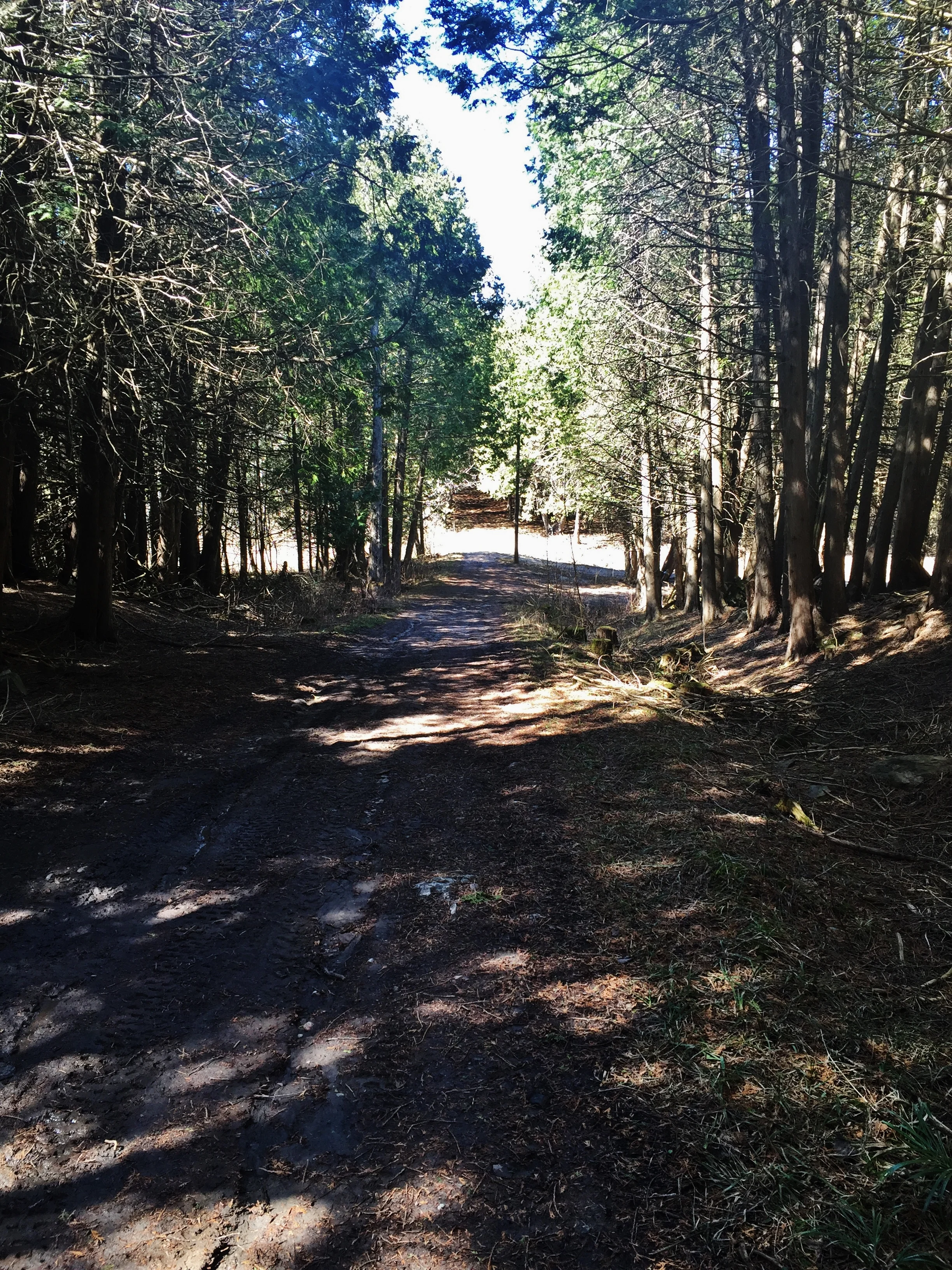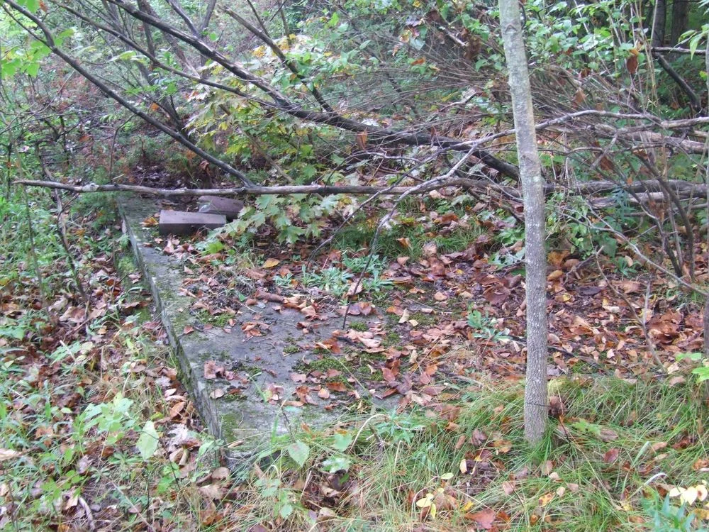 Old road bed, grown over, heading north in concession 5 was discovered by the owner of the property and restored.