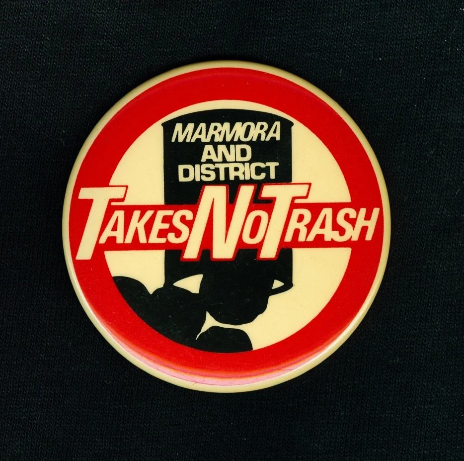 The Takes No Trash committee met on Thursday, January 18 to discuss plans currently underway to combat Metro Toronto's proposal to use the Marmoraton mine site as a dump for Toronto's garbage. To raise funds for the committee, the group is having buttons and hats sporting the new TNT logo made. The buttons should be on sale throughout SnoFest and Sled Dogweekend activities on February 2, 3. Hats should be available later in the winter or early spring.