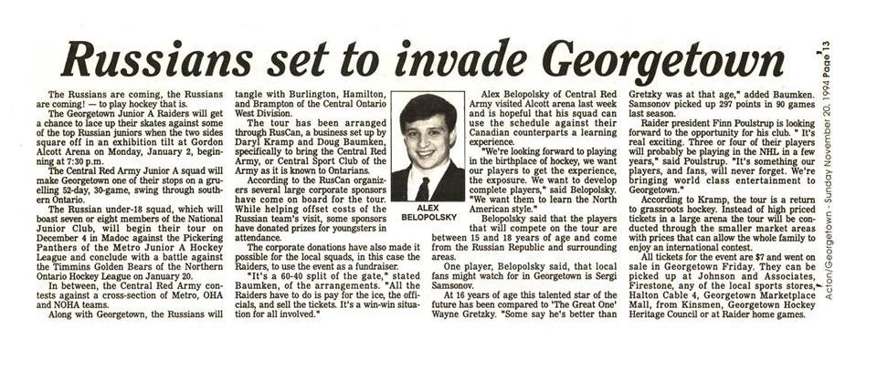Thanks to an inquiry by researcher, Gabor Szekeres of Hungary, the forgotten story of the CSKA Moscow junior ice hockey team playing in Madoc and Marmora, Ontario, has come to light.